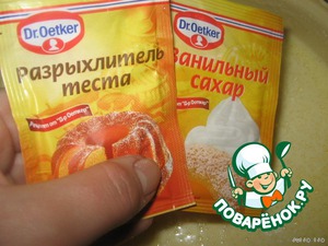 Добавляем разрыхлитель и ванильный сахар.