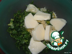 В оставшийся маринад добавляем мелко нарезанную зелень (половину), сливочное масло (половину) и панировочные сухари.