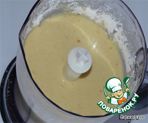 • Просеять муку с разрыхлителем и солью. Вмешать сухие ингредиенты в маслянно-желтковую массу в 3 приёма, чередуя с апельсиновым соком.