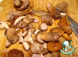 Грибы я взяла белые замороженые Пойдут конечно любые ,лисички ,шампиньоны и т.п.Грибы я предварительно отварила.Порезала.