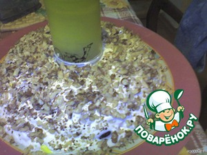 Все переслаиваем майонезом. Я разводила майонез примерно 3 :1 маринадом из шампиньонов - не так жирно получается и пропитывается быстрее. Главное, не переблощить с жидкостью.