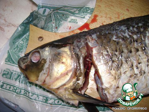Рыбу почистить, а чешую собрать в ситечко и тщательно помыть. Жабры и глаза удалить.