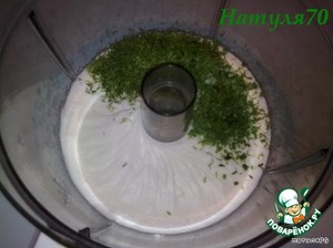 Взбиваем белки с добавлением щепотки соли. Измельчаем укроп и осторожно перемешиваем с белками