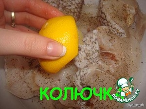 Рыбку порезала, специи и соль туда же, и сок лимона пусть маринуется