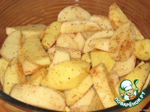 Картофель очистить, помыть и крупно нарезать, посолить, я еще добавляю в нее приправки.