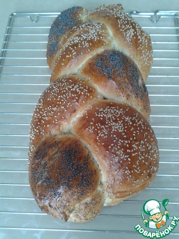 Второе яйцо взболтать, можно с молоком, но целого яйца и так много на такую косу, если есть куда пристроить белок, то лучше взять желток с 1 ст. л. молока для смазки.
