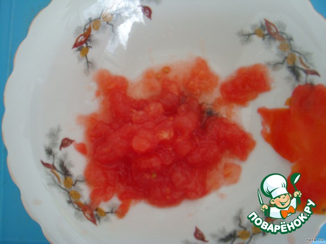 Помидор можно тоже мелко порезать, я потерла на крупной терке без кожуры, половину помидора, и чеснок выдавить, немного, ориентируйтесь на ваши вкусовые пристрастия, все эту красоту тоже в баночку.