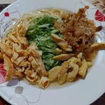 У нас кукси-чими (салат для кукси, который кладут в тарелку) делают из нашинкованного огурца и капусты, с добавлением уксуса и зажаренного красного перца (помимо соли и чеснока).