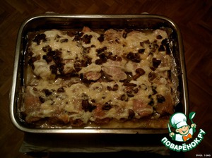 Полить майонезом. Если остались грибы - выложить сверху.