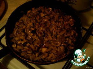 Грибы и лук порезать, обжарить сначала лук, потом добавить грибы.