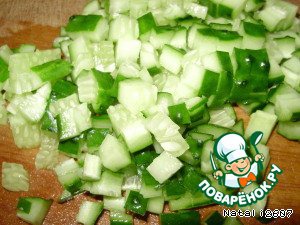 Отварные и очищенные яйца нарезать мелким кубиком.