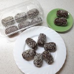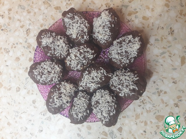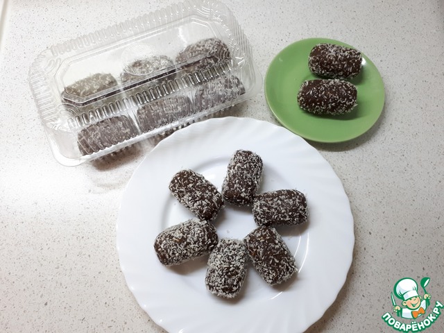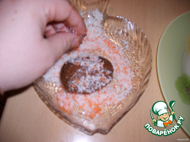 • Обваливаем пирожные в кокосовой стружке или в измельченном печенье