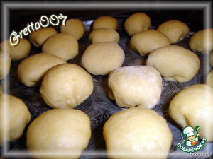 На лепешки положить начинку и сформировать шарики. Желательно следить, чтобы не было прорывов теста.