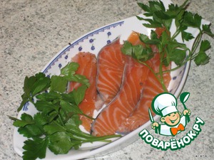 Очень необычный рецепт маринования рыбки попался мне в журнале «Гурмэ». Решила попробовать, так как мы очень любим красную рыбку (семга, лосось, форель). Результат превзошел все ожидания. Может и Вам приглянется этот рецептик.