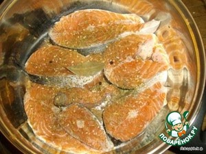 Рыбку готовим накануне банкета, вечером. Рыбину почистить и выпотрошить. Порезать на порционные куски (медальоны).