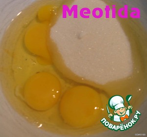 Яйца взбиваем в пушистую массу с сахаром и ванилином