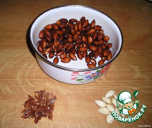 Чтобы приготовить это потрясающее чудо, нам понадобится совсем немногое. В первую очередь, это миндаль, который необходимо очистить от кожицы. Для этого замочите 1 стакан миндаля в чашке горячей воды на 30 минут. Как только вы зальёте их кипятком, кожица начнёт лопаться, издавая очень приятный музыкальному слуху звук. Очень прикольно, хотя, так бывает не каждый раз. Наверное, зависит от свежести орешек.