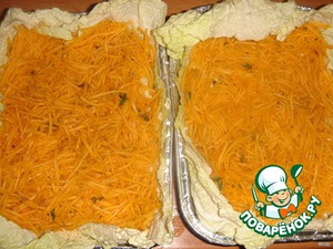 Для смазывания смешать 2 ст.л растительного масла и 2 ч.л. горчицы. Получившейся смесью смазать сверху листы капусты. -