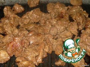 В той же сковороде помешивая обжарить печень 5-7 минут. Посолить, поперчить.