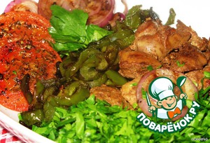 Рецепт блюда, взят из историй о Ниро Вульфе, великом сыщике и величайшем чревоугоднике. Замечательное и простое в приготовление блюдо из куриной печени и жареных овощей.