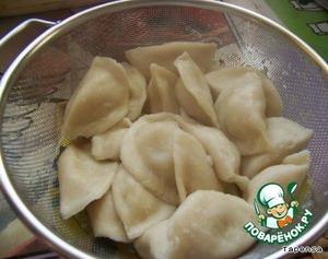 Первым делом варим пельмени. Когда они готовы, вынимаем их из воды и откладываем в сторонку остыть.