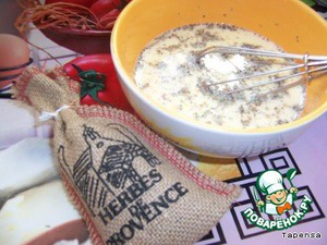 Сбиваем яйца с молоком и добавляем выбранные приправы. Если кому хочется, можно добавить и соль.