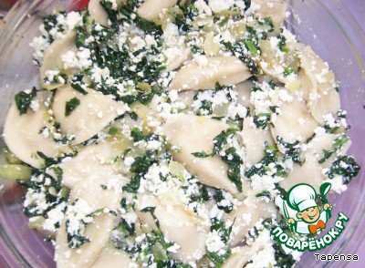 Основные ингреденты: пельмени (у меня были с картошкой и копченым мясом, но можно и другие), свежий шпинат (можно и мороженый), творог, молоко и яйца. Для вкуса блюда очень важны приправы. Я использовала Провансальскую смесь трав, но можно и базилик, и другие травы и специи. На снимке нет луковицы – она просто отказался позировать! Когда пельмени готовы, я их обильно посыпаю тертым сыром Пармазан, но можно обойтись и без него.