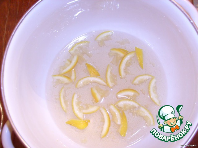 Сироп: Кожуру одного лимона или апельсина (можно сухую) тонко нарезать, залить водой, чтобы она покрывала корки.