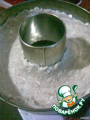 ну и сверху оставшийся фарш.Хорошенько приминаем,чтоб края нижнего и верхнего слоя сошлись.Отправляем прямо в форме в морозилку на 30-40 минут.