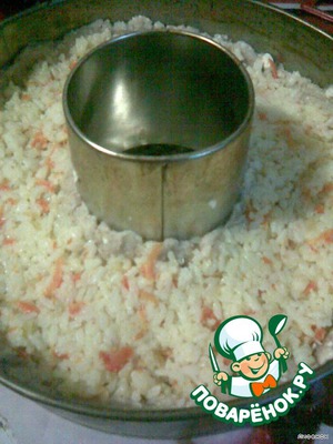 затем выкладываем рис с овощами,тоже утрамбовывая.