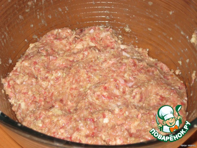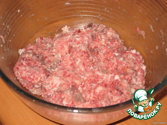 - Фарш мясной (свиной (200 гр), говяжий (200 гр), куриный (200 гр)) — 600 г