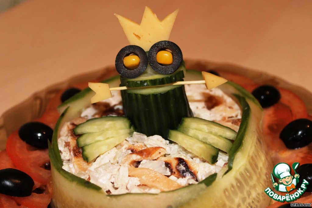 Вырезаем корону из моркови (груши) и укрепляем ее на голове (с помощью кусочка зубочистки).