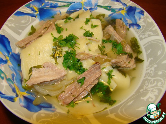Это моя вариация на тему "Бешбармак". Сытное, мясное, вкусное блюдо.