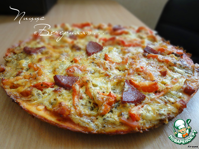 Описание: Почему "вечерняя"? Просто обычно я готовлю пиццу на дрожжевом тесте. А если его нет(и в морозилке запаса тоже нет), вечер, семья голодная и хочется именно пиццы - оп!!!! Есть такой рецептик, которой быстро и без особых трудозатрат все решает.