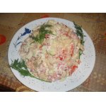Салат нашла у Юлии Высоцкой. Приготовила и осталась очень довольна. Очень вкусный, легкий, сочный салат.