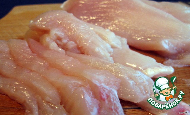 Томаты в собственном соку, предварительно очищенные от кожицы и нарезанные на кусочки, обжариваем вместе с куриным филе и смесью из лука и чеснока.
