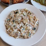 Добавляем любую зелень, у меня кинза была (муж без нее жить не может), солим по вкусу, перемешиваем, добавляем майонез и - готово!