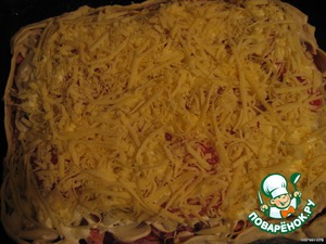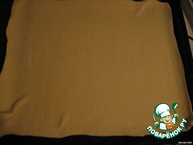 Раскатать тесто по размеру вашего противня и сразу выложить на него