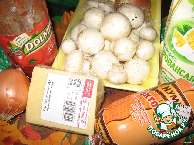 Это почти все, что нам понадобится. Правда, колбасы у меня 3 видов (вареная, копченая, ветчинная).