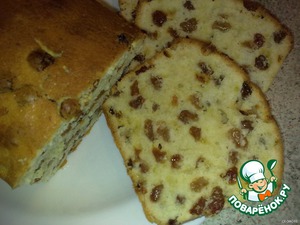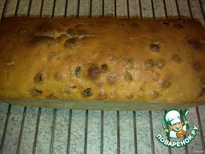 Изюм добавить в тесто (оно получается как густая сметана, тягучее, и вымешить деревянной ложкой или лопаткой), затем выложить в предварительно смазанную маслом и обсыпанную мукой огнеупорную форму для кекса. Выпекать в духовке 1,5 часа, предварительно разогретой до 140* (это по рецепту). Я еще добавила 10 минут при 160* до зарумянивания.