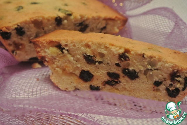 Рецепт взяла из журнала «Гурмэ». «Фруктовый кекс готовят за день до подачи. Нарезанный и замороженный он может храниться довольно долго, до 10 дней, становясь от этого все вкусней и вкусней» выдержка из статьи (я не замораживала). Как по мне, славный кекс получился, вкусный, плотный и очень ароматный. Даже подумываю использовать этот рецептик при выпечке пасхального кулича только в соответствующей форме. Может и Вам приглянется.