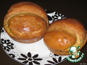 Когда я достала булочки из духовки, то помазала сверху сливочным маслом (может так и не надо делать, но это был мой порыв).