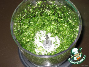 Начинка: измельчить в кухонном комбайне петрушку, укроп и чеснок.