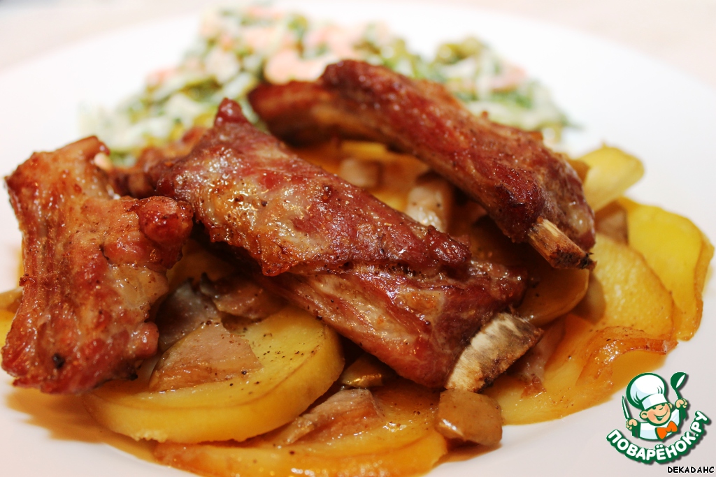 Рецепт «Свиные ребрышки, запеченные в яблоках»: