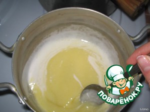 Сливочное масло растопить в кастрюльке и дать покипеть ~15 минут на маленьком огне, периодически снимая появляющуюся пену.