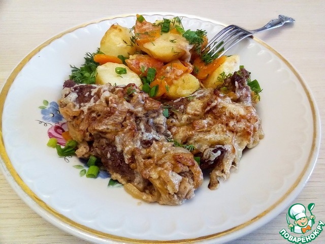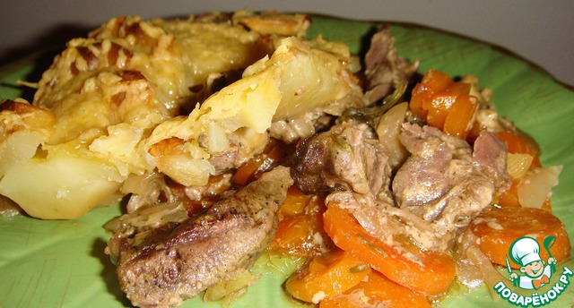 2) почему-то в других случаях запекания картошки с мясом в духовке иногда случается картофель выходит твердоватым, даже если и заливки много разной, а по этому рецепту - ВСЕГДА ( вот реально ВСЕГДА!!!!!) картошка мягкая и в нужной кондиции. Прямо чудо какое-то