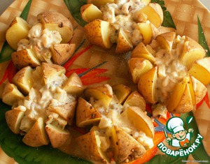 • Картофель тщательно моем, чистим щеткой от грязи, надрезаем крест-накрест на 8 частей.