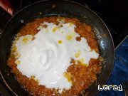 И в конце заливаем сметану, даeм закипеть, солим, перчим.