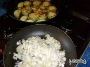 опять повторяем в том же порядке, пока не кончатся кабачки, и сверху заливаем поджаркой,