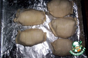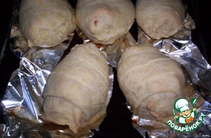 В меню субботнего обеда были запланированы "Ножки в тесте"- вкусное основное блюдо. Купила слоеное тесто, а оно, как оказалось, не подходит для рецепта (тесто расплылось, время приготовления увеличилось в два раза). Вот какие получились ножки...